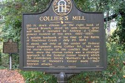 This area is also rich in Civil War history. Tanyard Creek Park was at the center of the Battle of Peachtree Creek, which was fought on July 20, 1864 and was the site of some of the bloodiest fighting of the Civil War. Along Collier Road and Bobby Jones Golf Course, there are several historical markers describing the battle. (more history below)